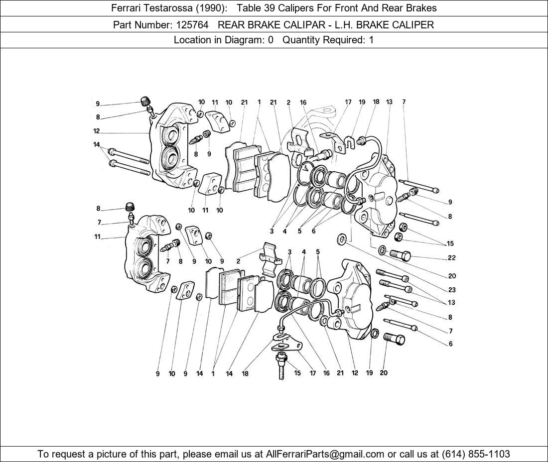 Ferrari Part Number 125764 in Ferrari Testarossa (1990) Table 39 Calipers For Front And Rear Brakes