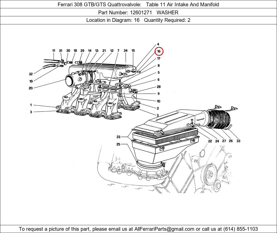 Ferrari Part Number 12601271, WASHER shown here as used in Ferrari 308 GTB/GTS Quattrovalvole Table 11 Air Intake And Manifold. Location in Diagram: 16. Required Quantity: 2. This Ferrari part is used in more than one diagram. Click on the diagrams below to see alternative uses of this part: