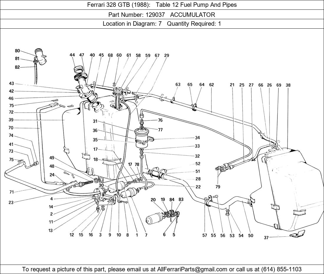 Ferrari Part 129037, ACCUMULATOR, shown here as used in Ferrari 328 GTB (1988) Table 12 Fuel Pump And Pipes.