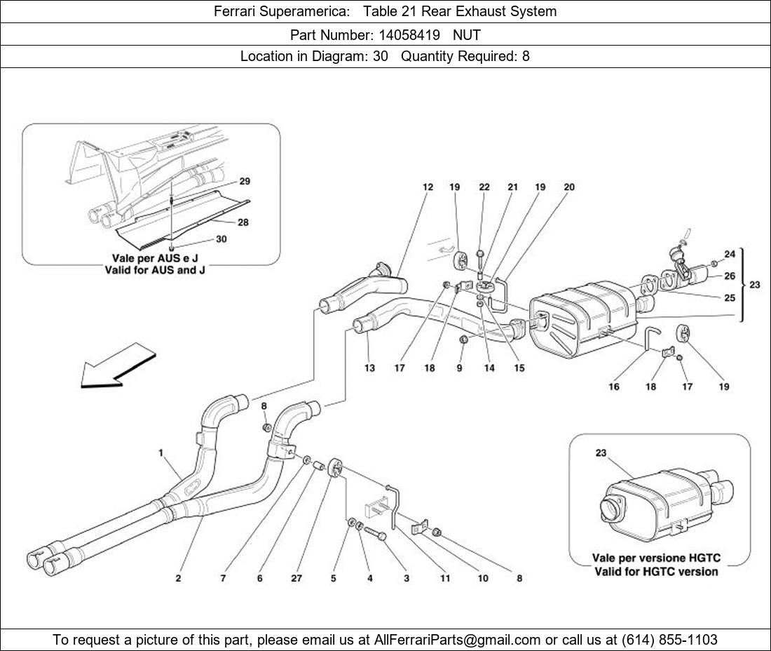 Ferrari Part 14058419, NUT, shown here as used in Ferrari Superamerica Table 21 Rear Exhaust System. Other uses of this part are shown below: