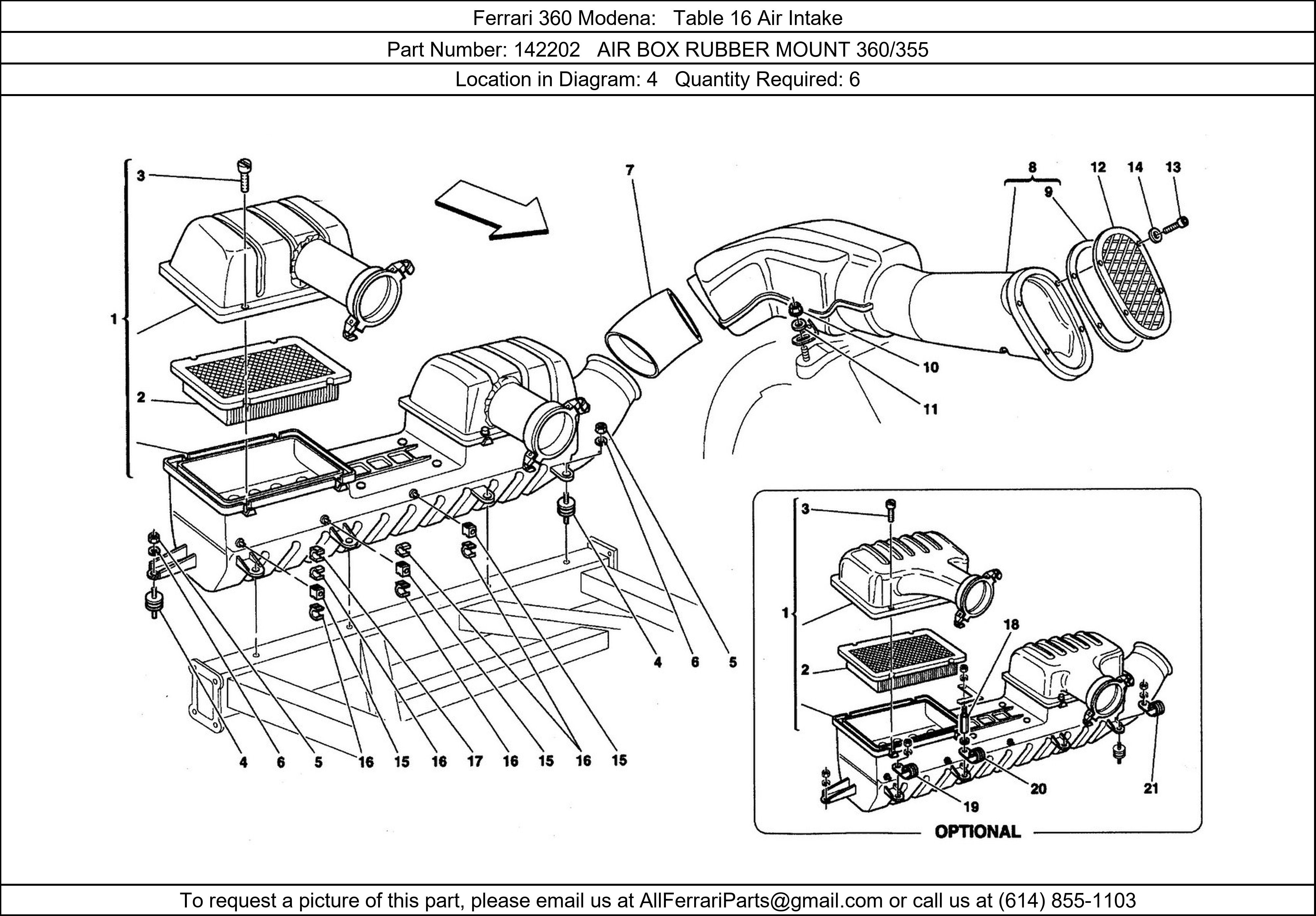 Ferrari Part Number 142202 in Ferrari 360 Modena Table 16 Air Intake