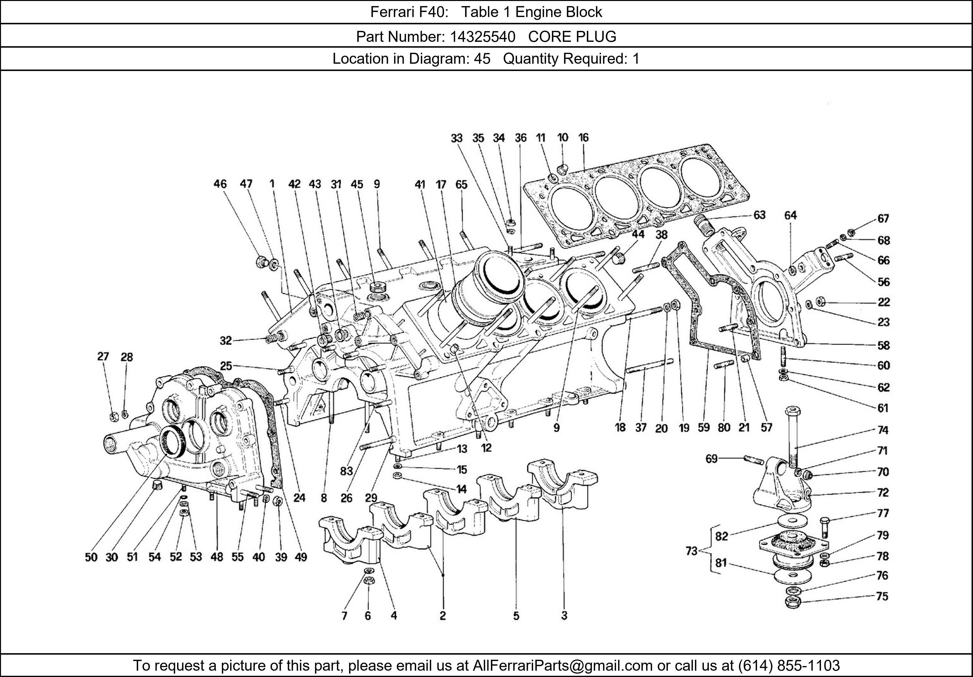 Ferrari Part 14325540, CORE PLUG, shown here as used in Ferrari F40 Table 1 Engine Block. Other uses of this part are shown below: