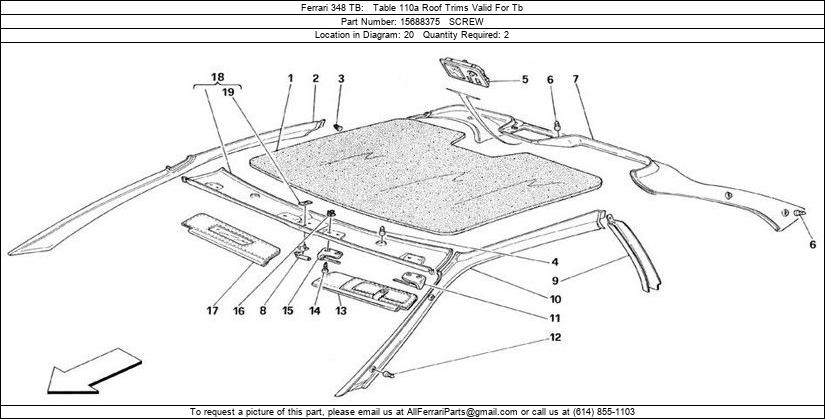 Ferrari Part 15688375, SCREW, shown here as used in Ferrari 348 TB Table 110a Roof Trims Valid For Tb. Other uses of this part are shown below: