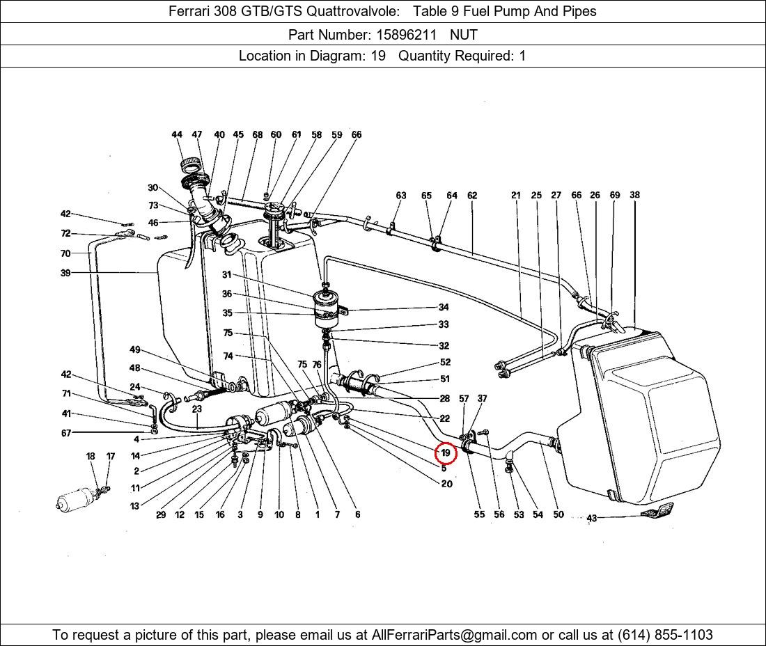 Ferrari Part Number 15896211, NUT shown here as used in Ferrari 308 GTB/GTS Quattrovalvole Table 9 Fuel Pump And Pipes. Location in Diagram: 19. Required Quantity: 1. This Ferrari part is used in more than one diagram. Click on the diagrams below to see alternative uses of this part: