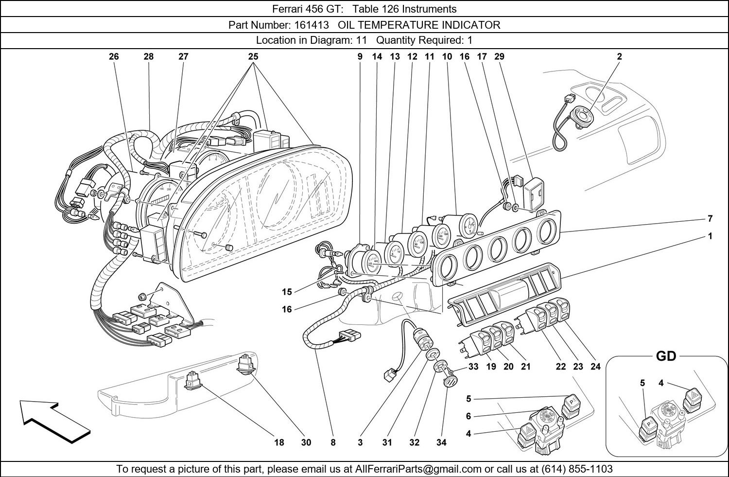 Ferrari Part 161413, OIL TEMPERATURE INDICATOR, shown here as used in Ferrari 456 GT Table 126 Instruments.