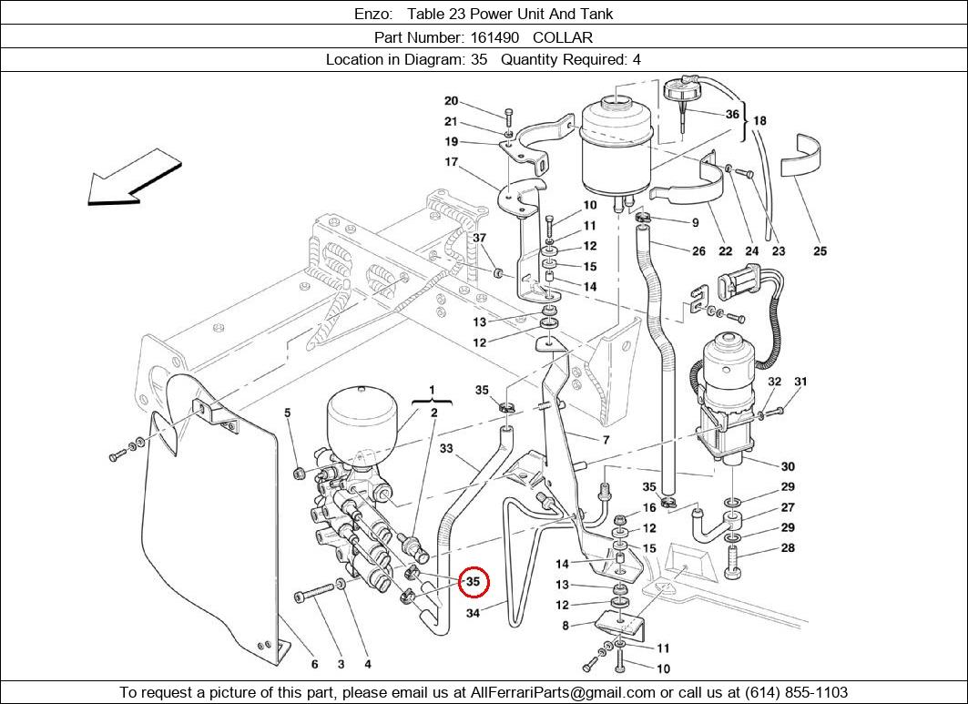 Ferrari Part Number 161490, COLLAR shown here as used in Enzo Table 23 Power Unit And Tank. Location in Diagram: 35. Required Quantity: 4. This Ferrari part is used in more than one diagram. Click on the diagrams below to see alternative uses of this part: