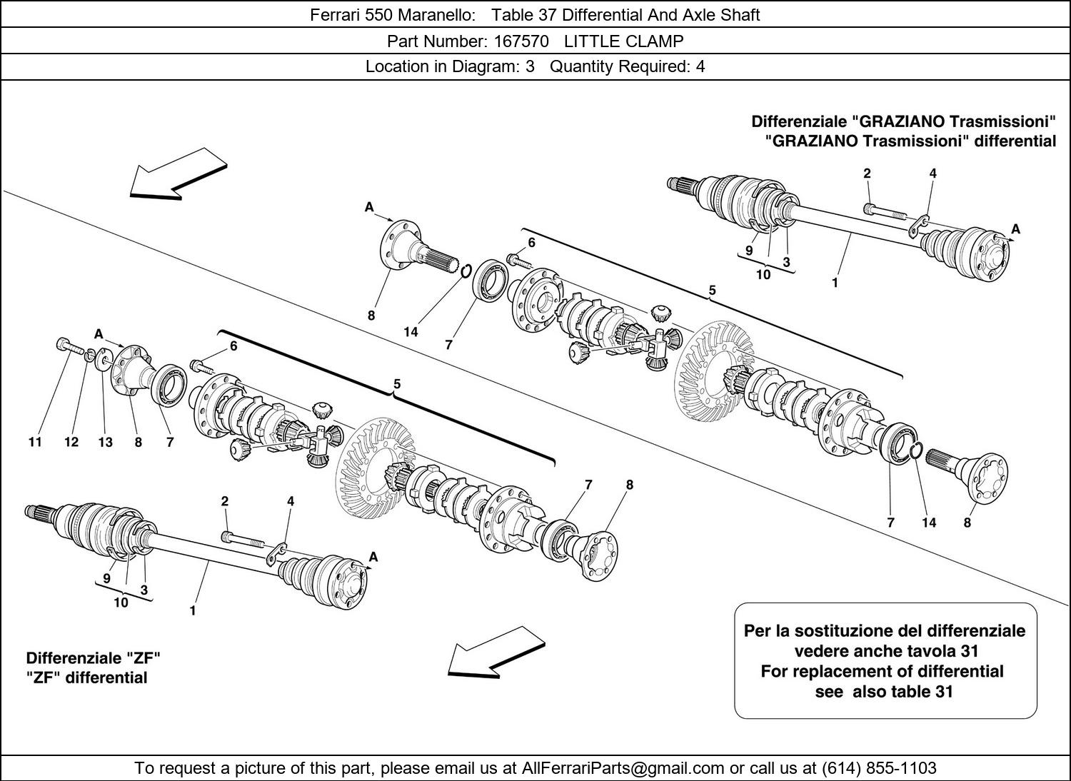 Ferrari Part 167570, LITTLE CLAMP, shown here as used in Ferrari 550 Maranello Table 37 Differential And Axle Shaft.