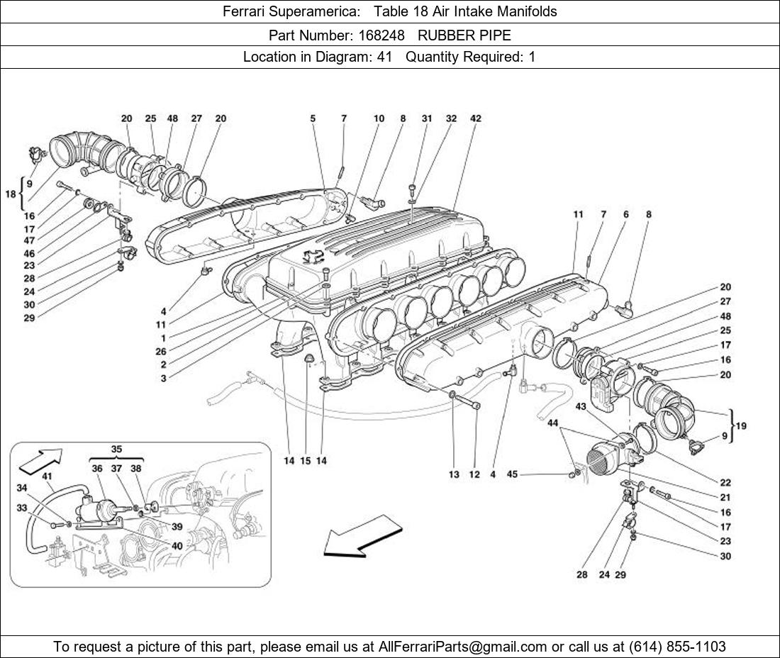 Ferrari Part 168248, RUBBER PIPE, shown here as used in Ferrari Superamerica Table 18 Air Intake Manifolds. Other uses of this part are shown below: