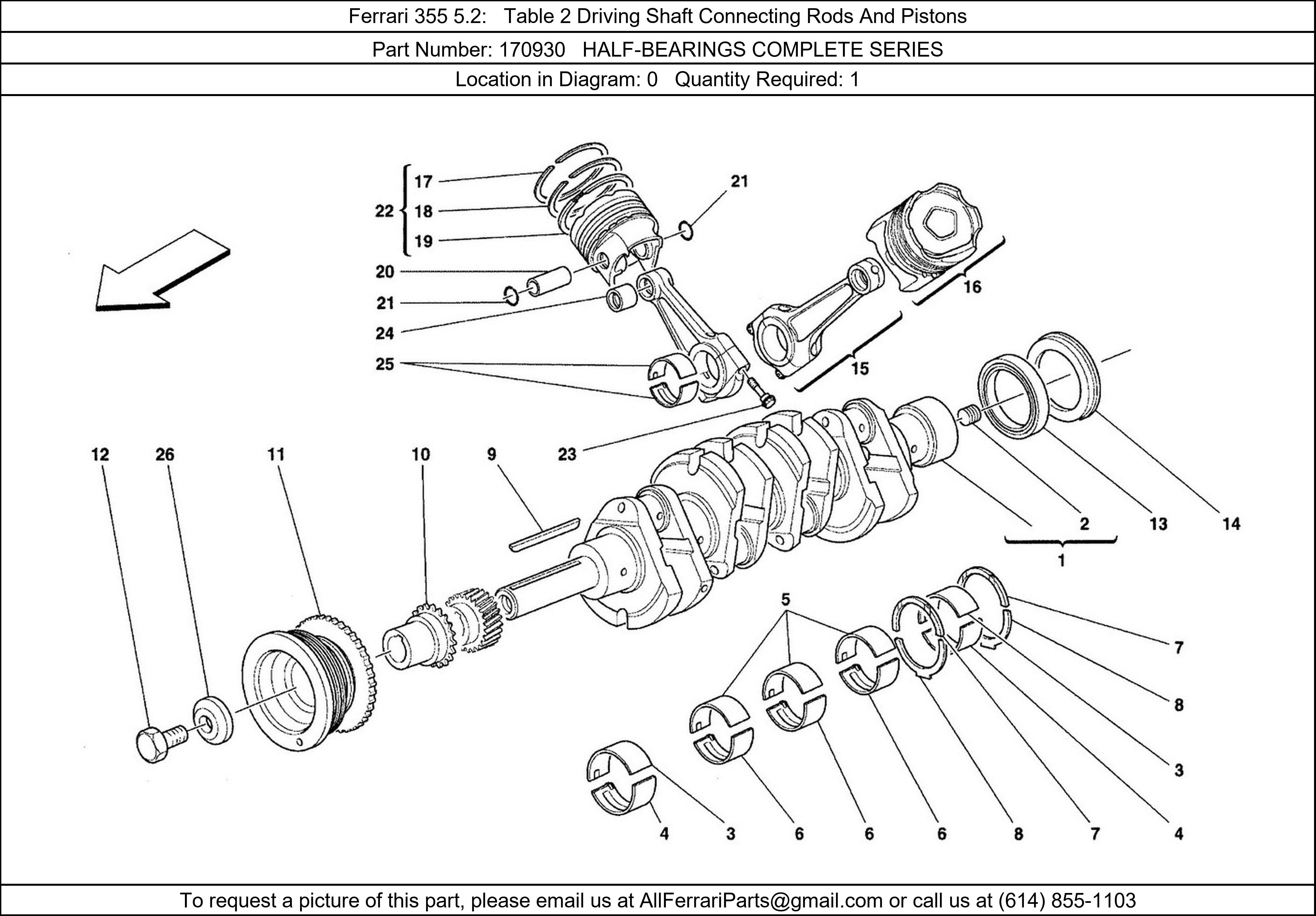 Ferrari Part 170930, HALF-BEARINGS COMPLETE SERIES, shown here as used in Ferrari 355 5.2 Table 2 Driving Shaft Connecting Rods And Pistons.