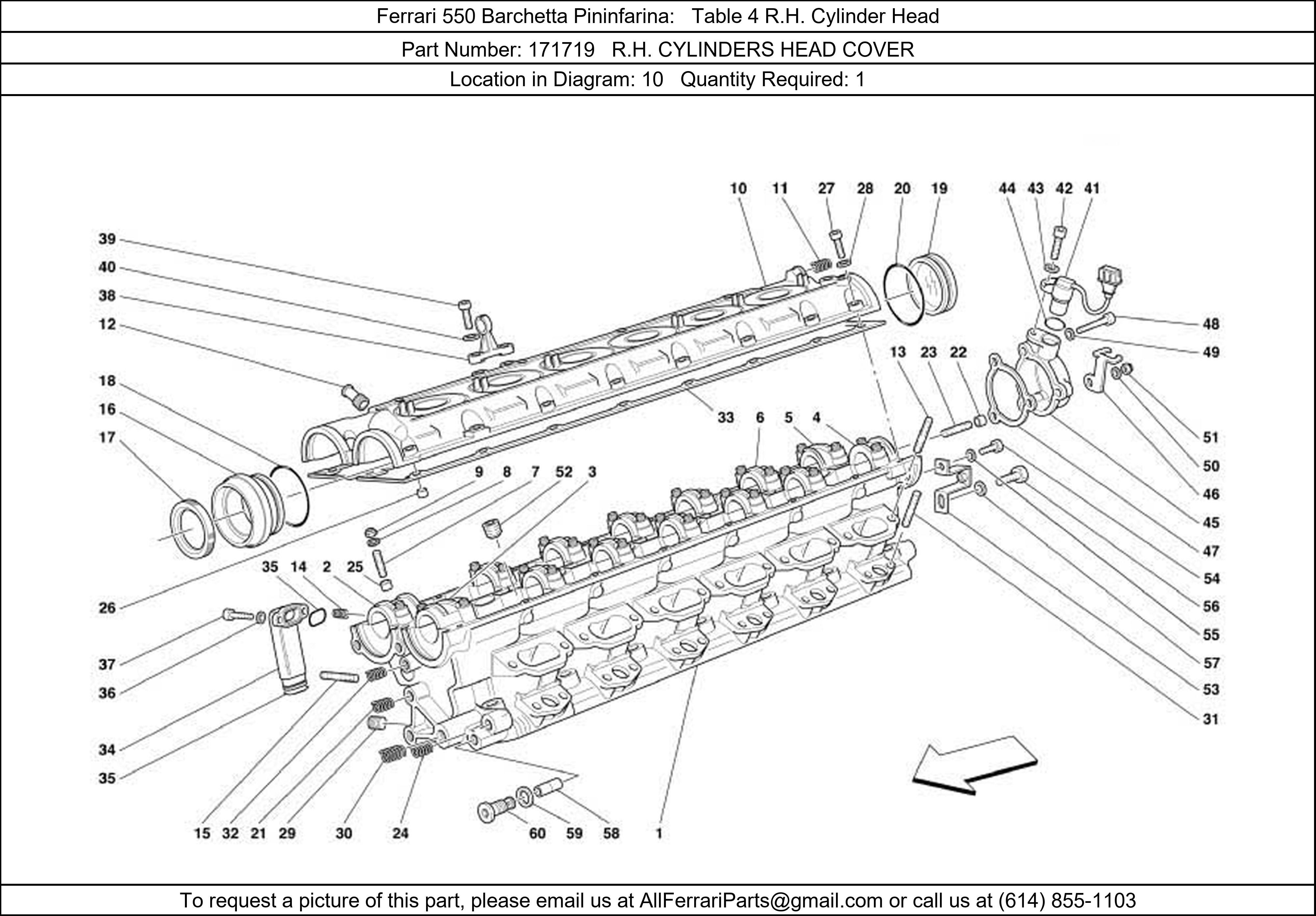 Ferrari Part Number 171719 in Ferrari 550 Barchetta Pininfarina Table 4 R.H. Cylinder Head