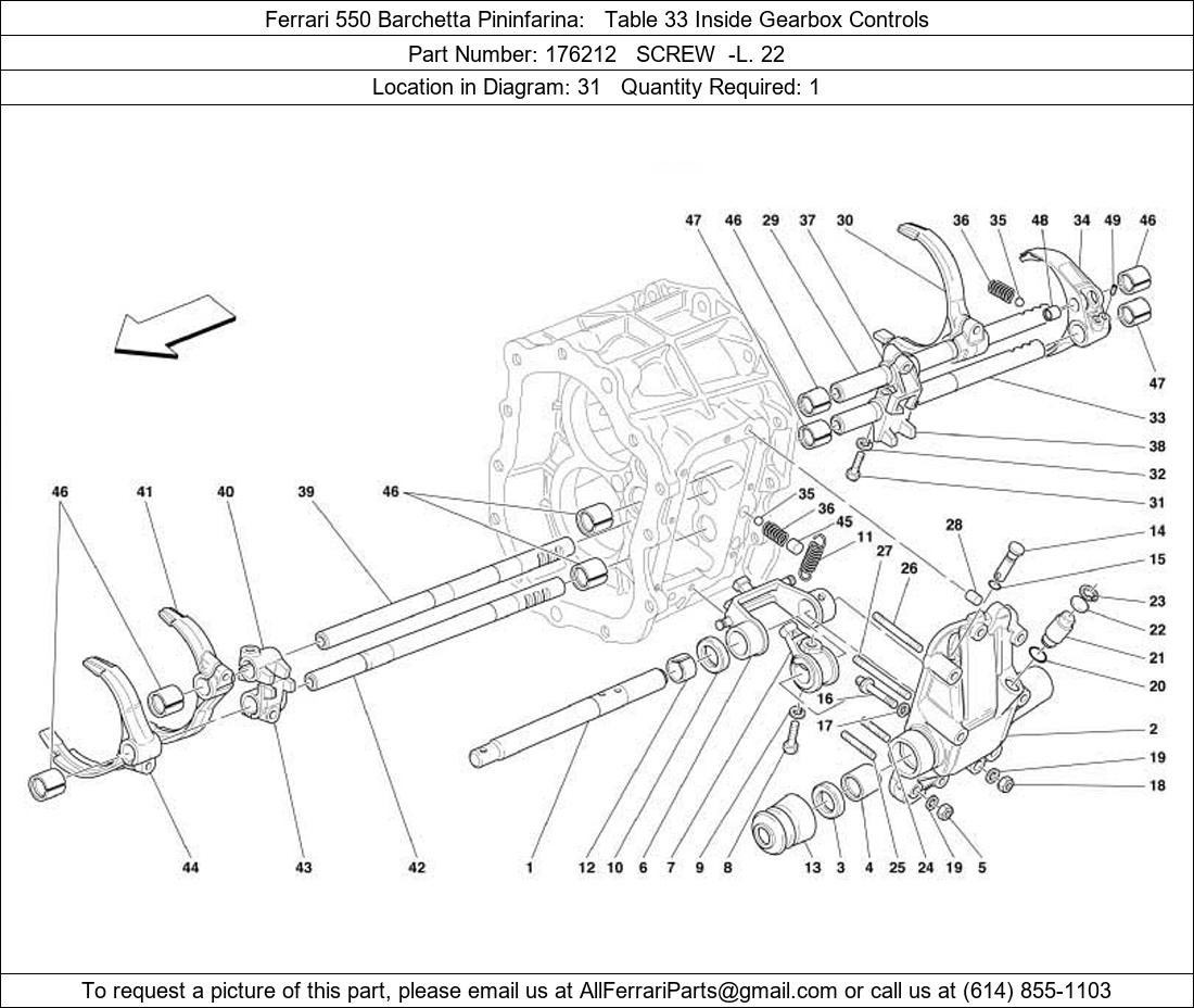 Ferrari Part Number 176212 in Ferrari 550 Barchetta Pininfarina Table 33 Inside Gearbox Controls