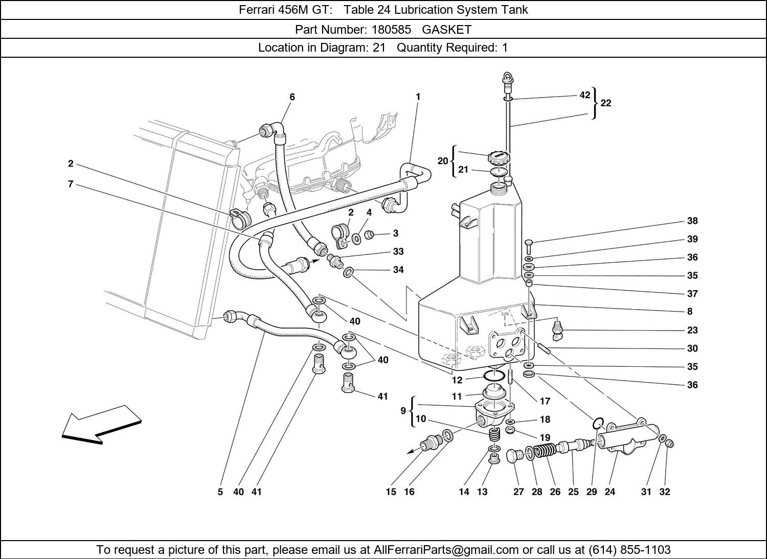 Ferrari Part 180585, GASKET, shown here as used in Ferrari 456M GT Table 24 Lubrication System Tank. Other uses of this part are shown below:
