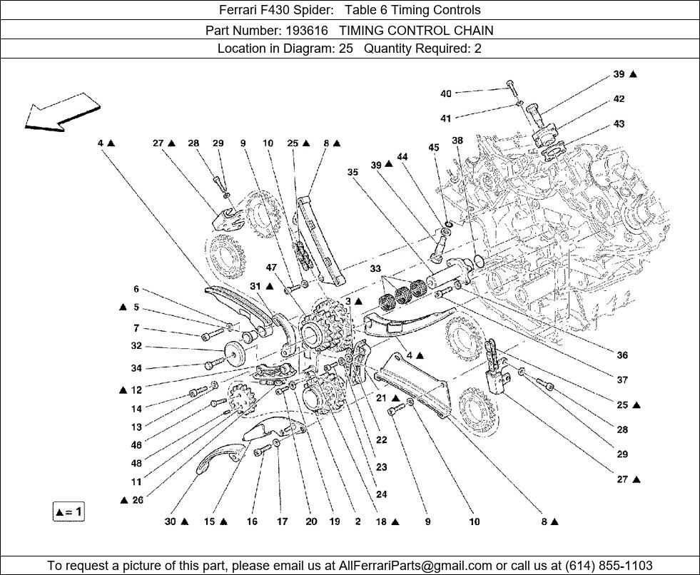 Ferrari Part 193616, TIMING CONTROL CHAIN, shown here as used in Ferrari F430 Spider Table 6 Timing Controls. Other uses of this part are shown below: