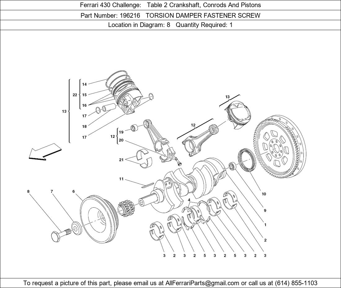 Ferrari Part Number 196216 in Ferrari 430 Challenge Table 2 Crankshaft, Conrods And Pistons