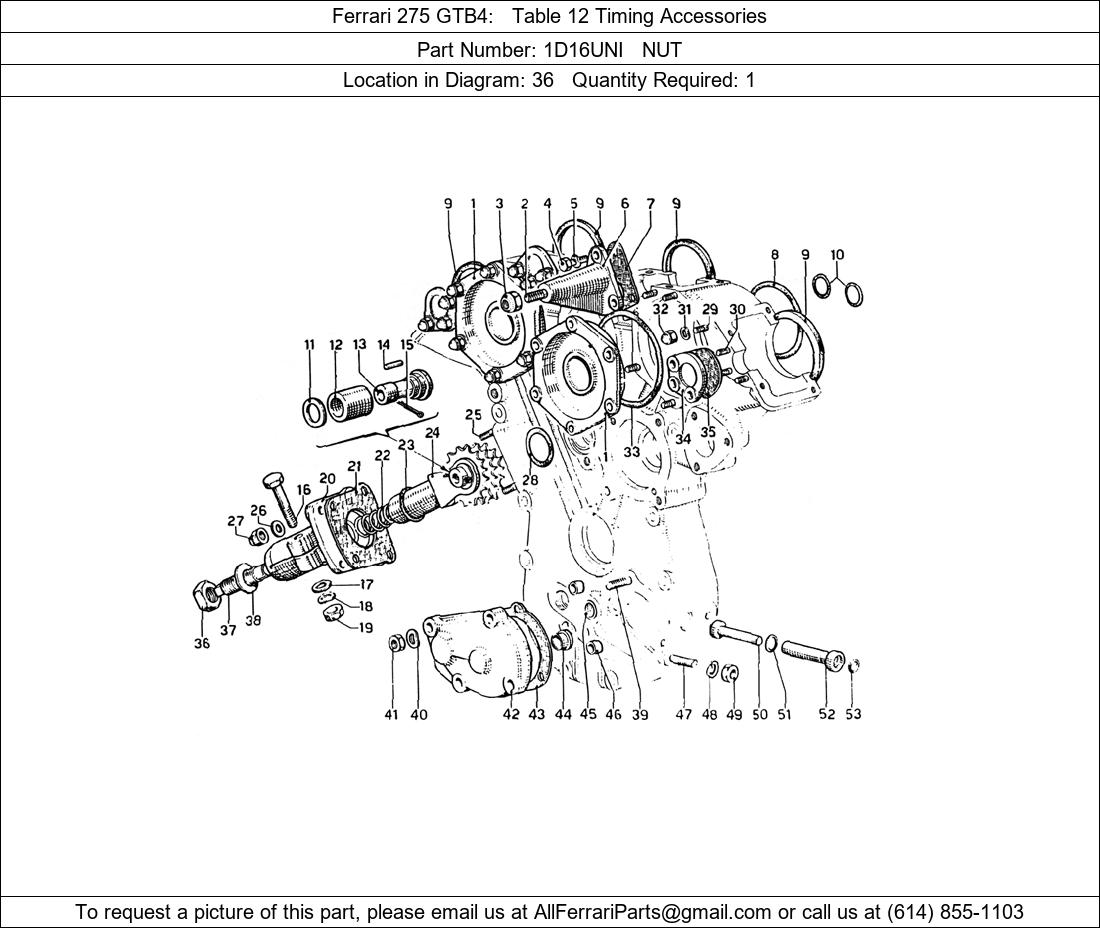 > Ferrari Part Number 1D16UNI in Ferrari 275 GTB4 Table 12 Timing Accessories