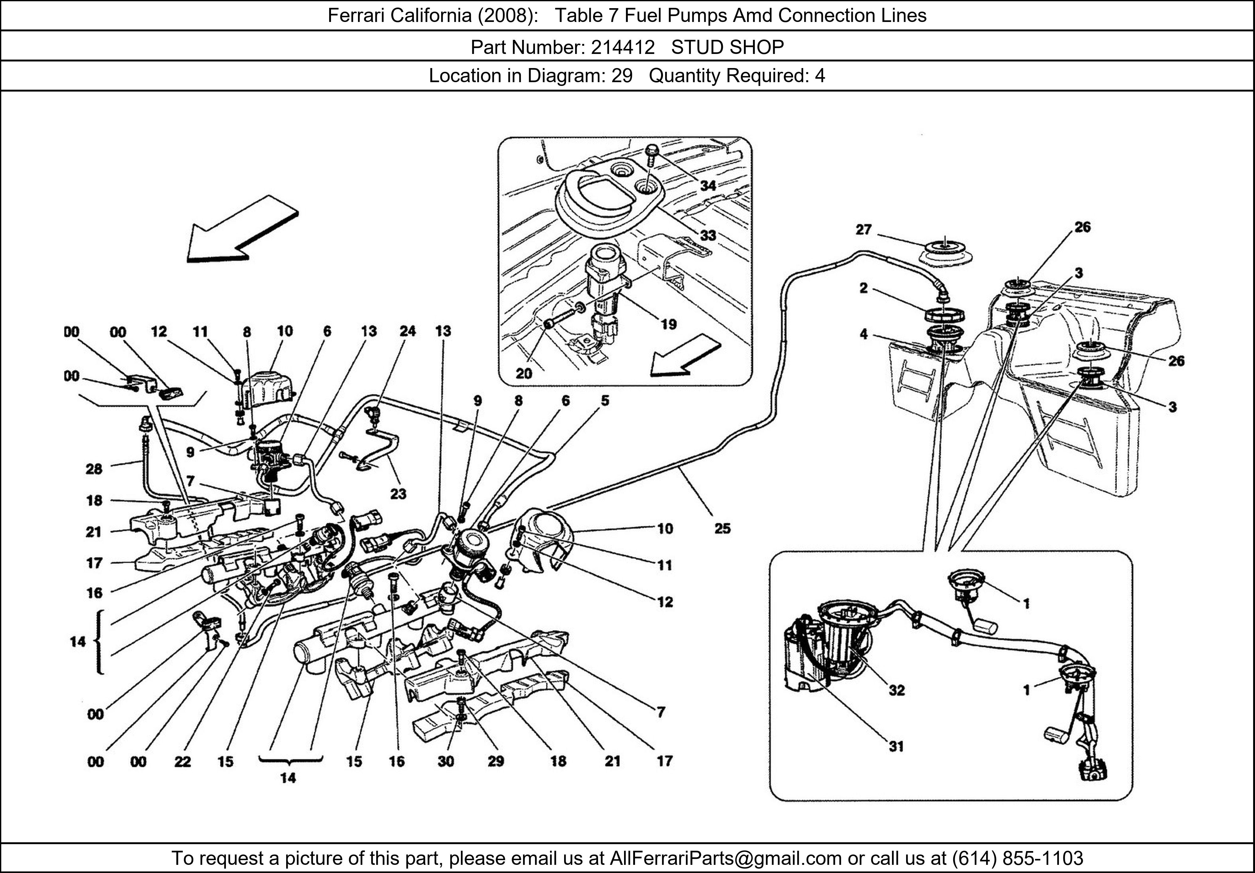 Ferrari Part 214412, STUD SHOP, shown here as used in Ferrari California (2008) Table 7 Fuel Pumps Amd Connection Lines. Other uses of this part are shown below: