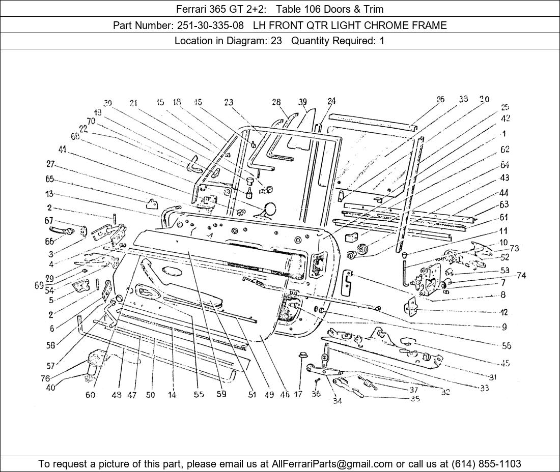 Ferrari Part Number 251-30-335-08 in Ferrari 365 GT 2+2 Table 106 Doors & Trim