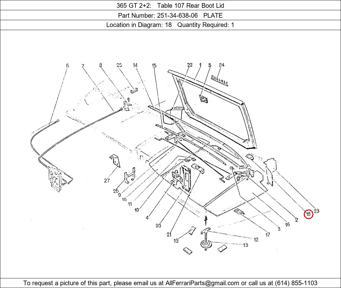 Ferrari Part Number 251-34-638-06, PLATE shown here as used in 365 GT 2+2 Table 107 Rear Boot Lid. Location in Diagram: 18. Required Quantity: 1