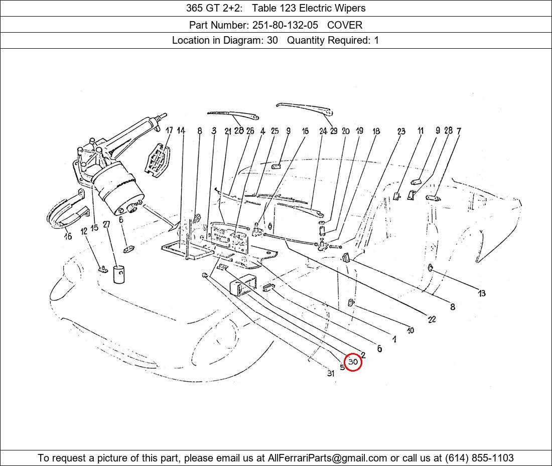 Ferrari Part Number 251-80-132-05, COVER shown here as used in 365 GT 2+2 Table 123 Electric Wipers. Location in Diagram: 30. Required Quantity: 1