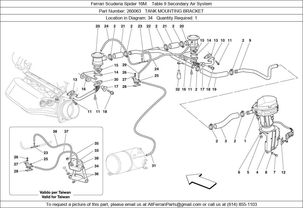 Ferrari Part 260063, TANK MOUNTING BRACKET, shown here as used in Ferrari Scuderia Spider 16M Table 9 Secondary Air System.