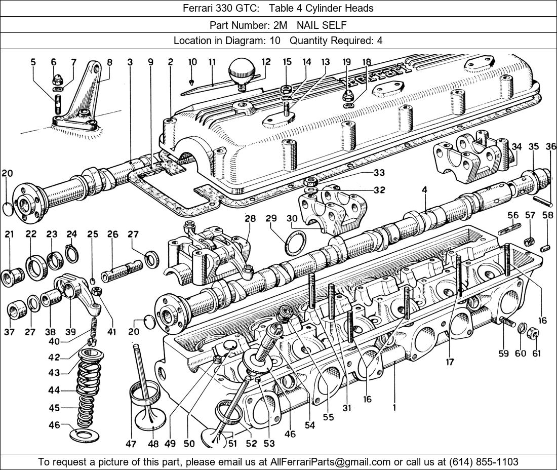 Ferrari Part Number 2M in Ferrari 330 GTC Table 4 Cylinder Heads