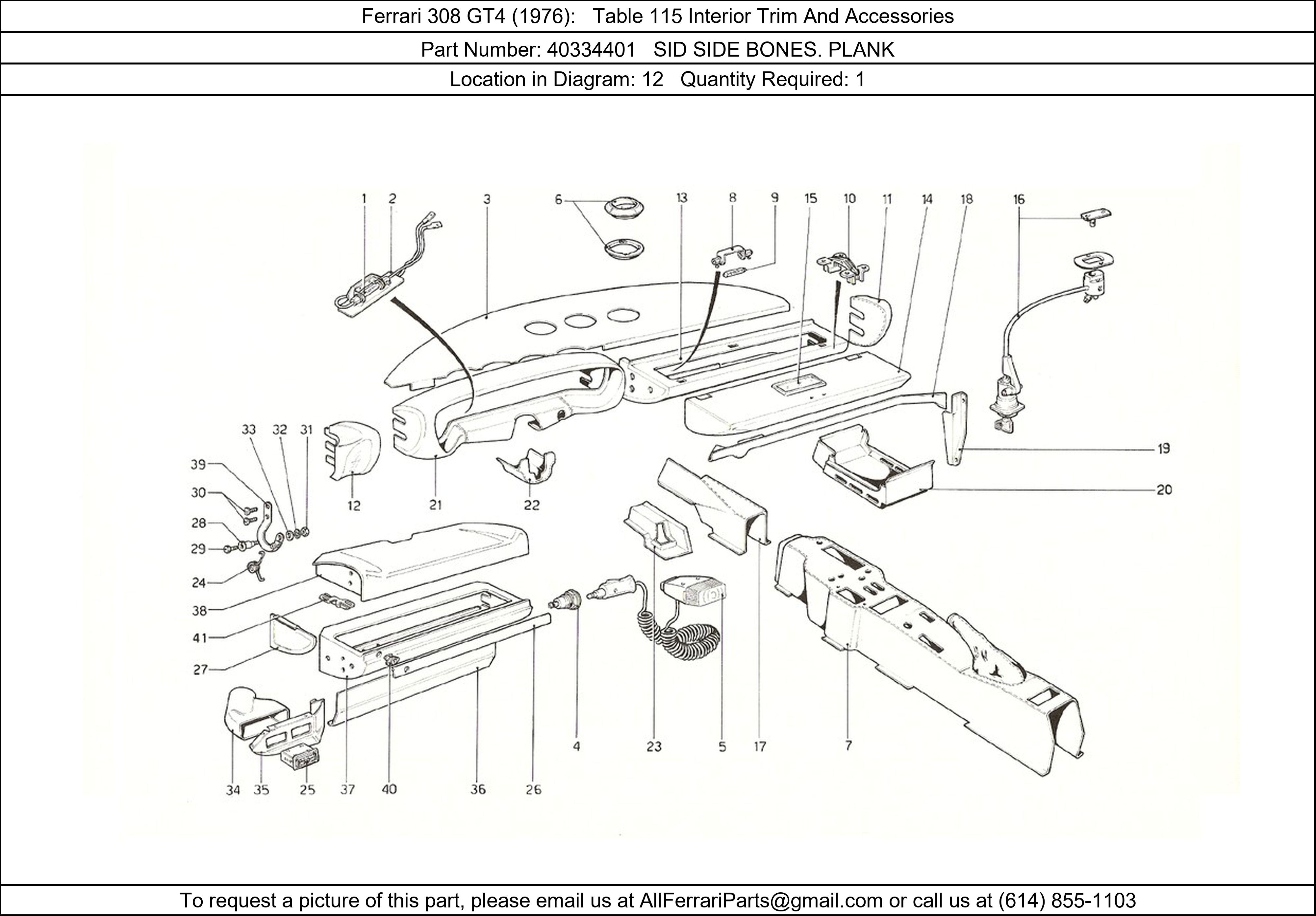 Ferrari Part 40334401, SID SIDE BONES. PLANK, shown here as used in Ferrari 308 GT4 (1976) Table 115 Interior Trim And Accessories.