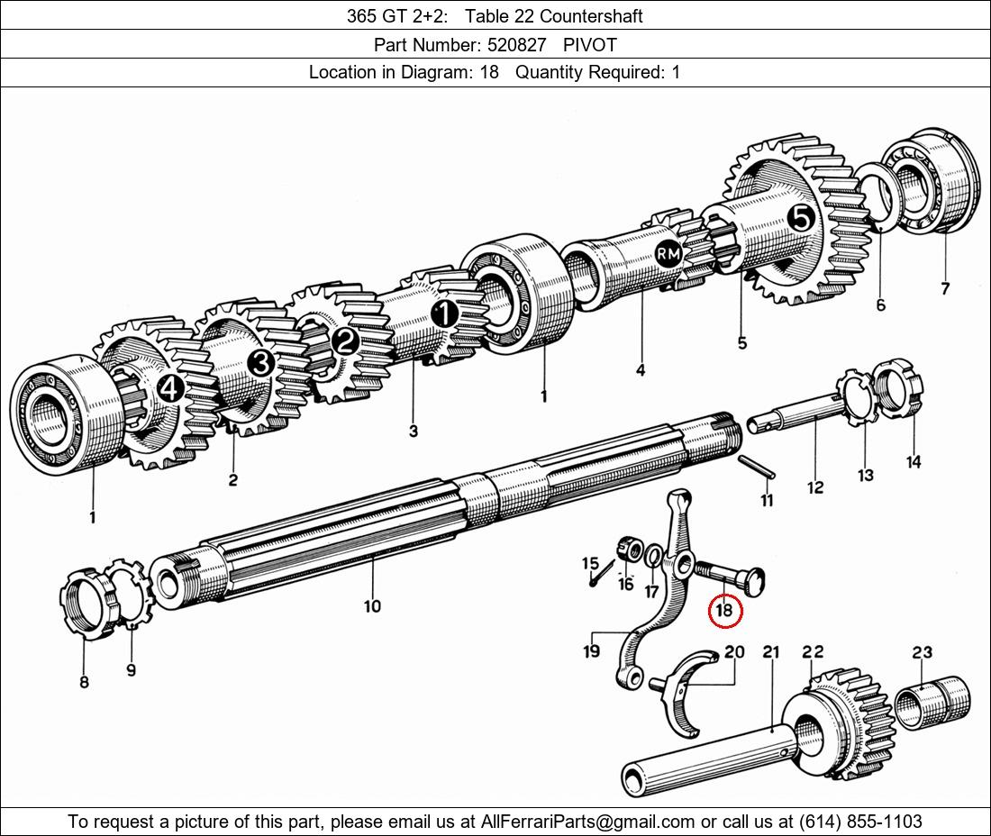 Ferrari Part Number 520827, PIVOT shown here as used in 365 GT 2+2 Table 22 Countershaft. Location in Diagram: 18. Required Quantity: 1