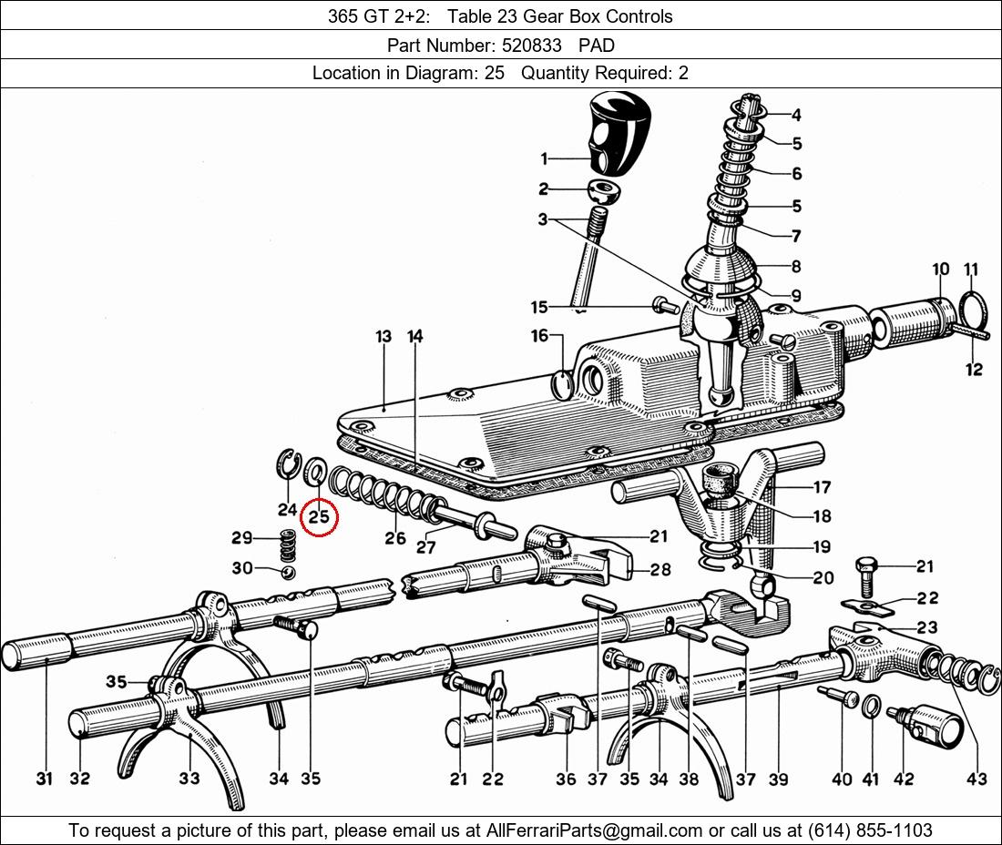 Ferrari Part Number 520833, PAD shown here as used in 365 GT 2+2 Table 23 Gear Box Controls. Location in Diagram: 25. Required Quantity: 2