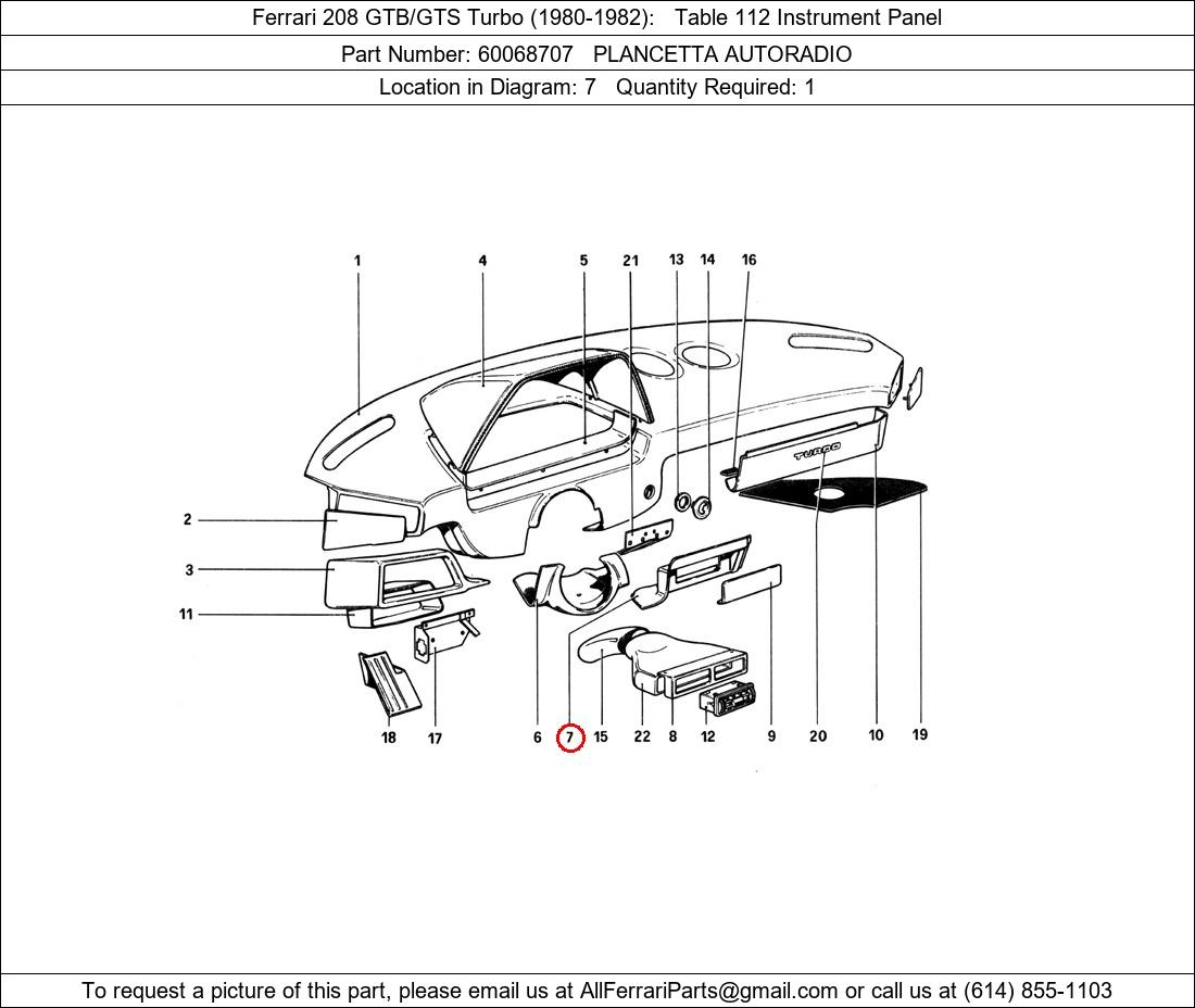 Ferrari Part 60068707 in Ferrari 208 GTB/GTS Turbo (1980-1982)