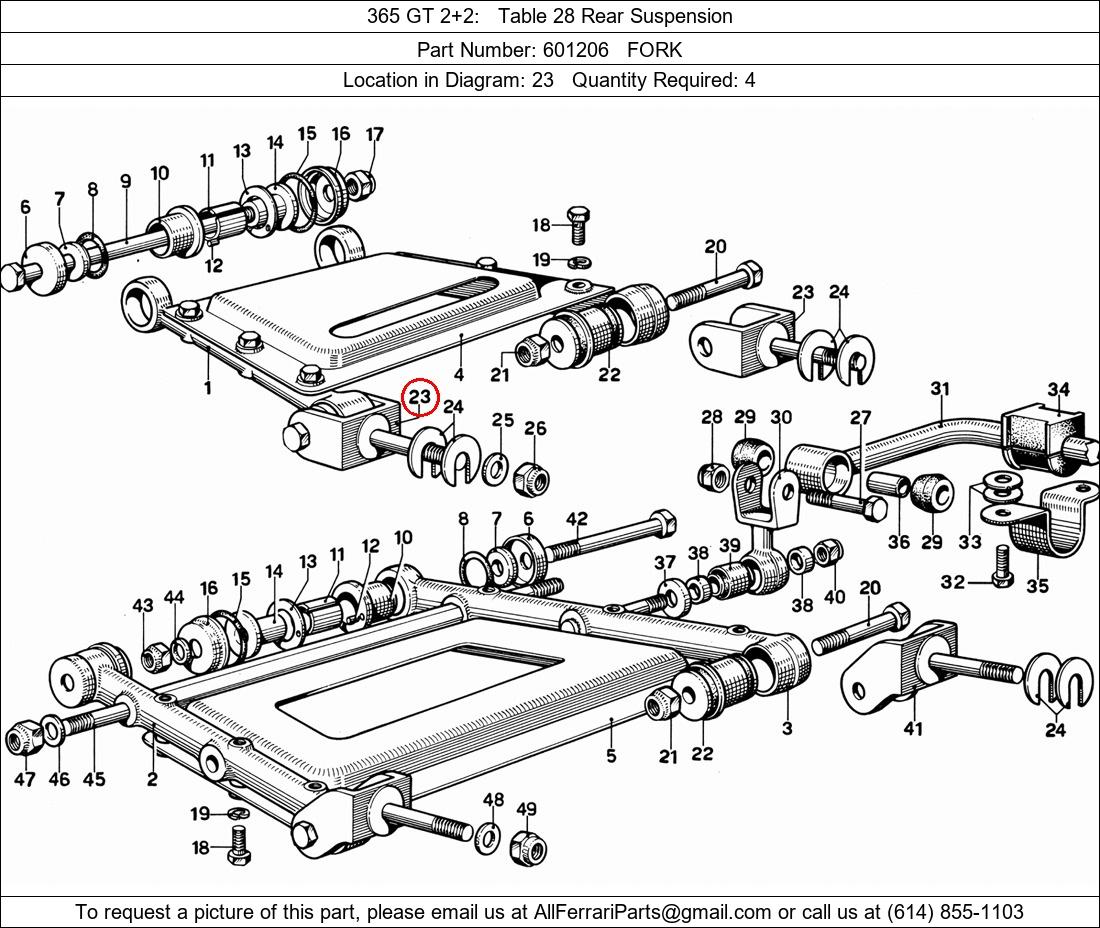 Ferrari Part Number 601206, FORK shown here as used in 365 GT 2+2 Table 28 Rear Suspension. Location in Diagram: 23. Required Quantity: 4