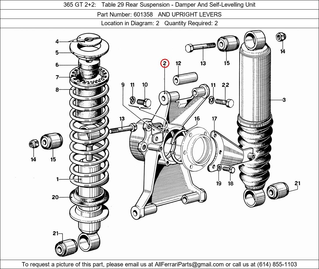 Ferrari Part Number 601358, AND UPRIGHT LEVERS shown here as used in 365 GT 2+2 Table 29 Rear Suspension - Damper And Self-Levelling Unit. Location in Diagram: 2. Required Quantity: 2