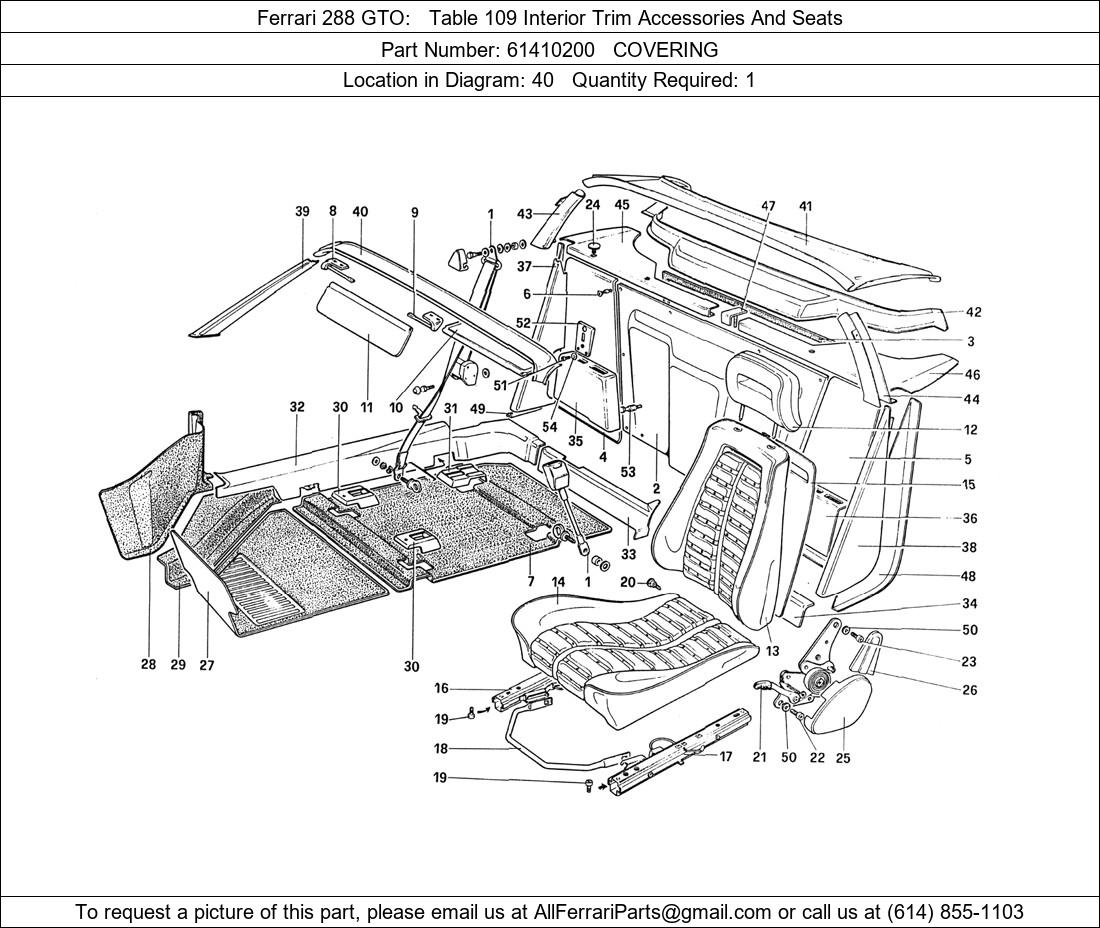Ferrari Part 61410200, COVERING, shown here as used in Ferrari 288 GTO Table 109 Interior Trim Accessories And Seats.