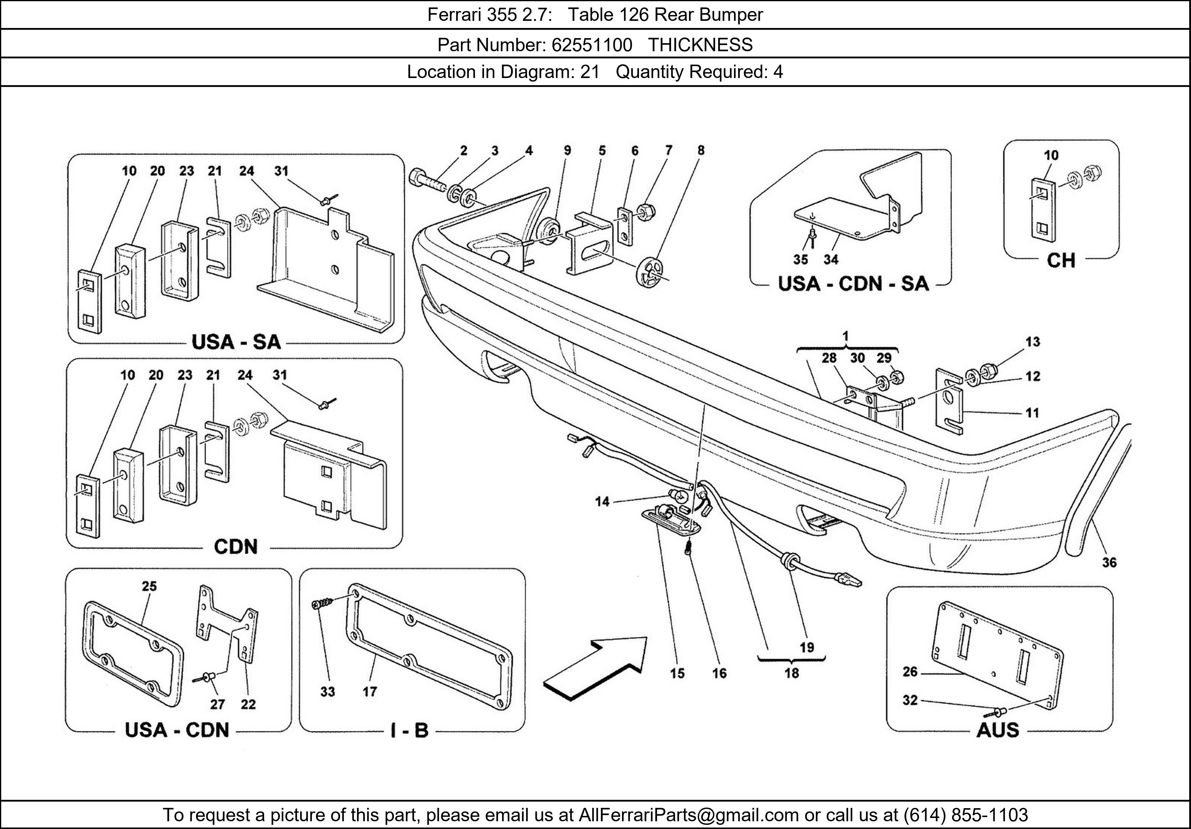 Ferrari Part 62551100, THICKNESS, shown here as used in Ferrari 355 2.7 Table 126 Rear Bumper. Other uses of this part are shown below: