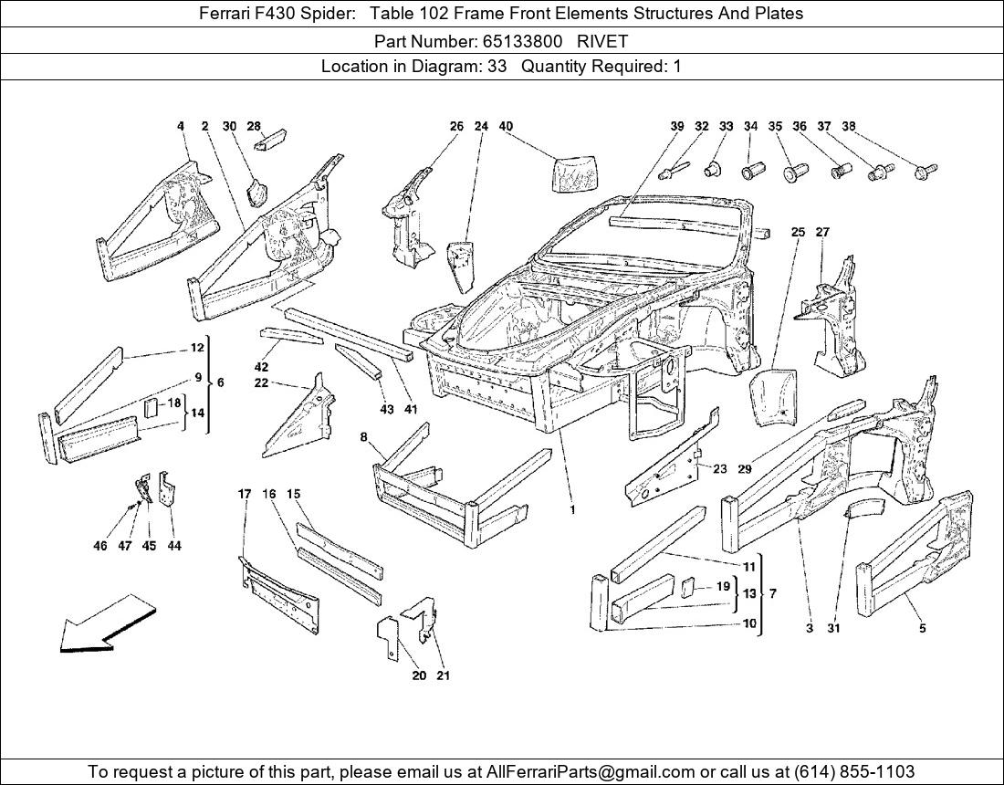 Ferrari Part Number 65133800 in Ferrari F430 Spider Table 102 Frame Front Elements Structures And Plates