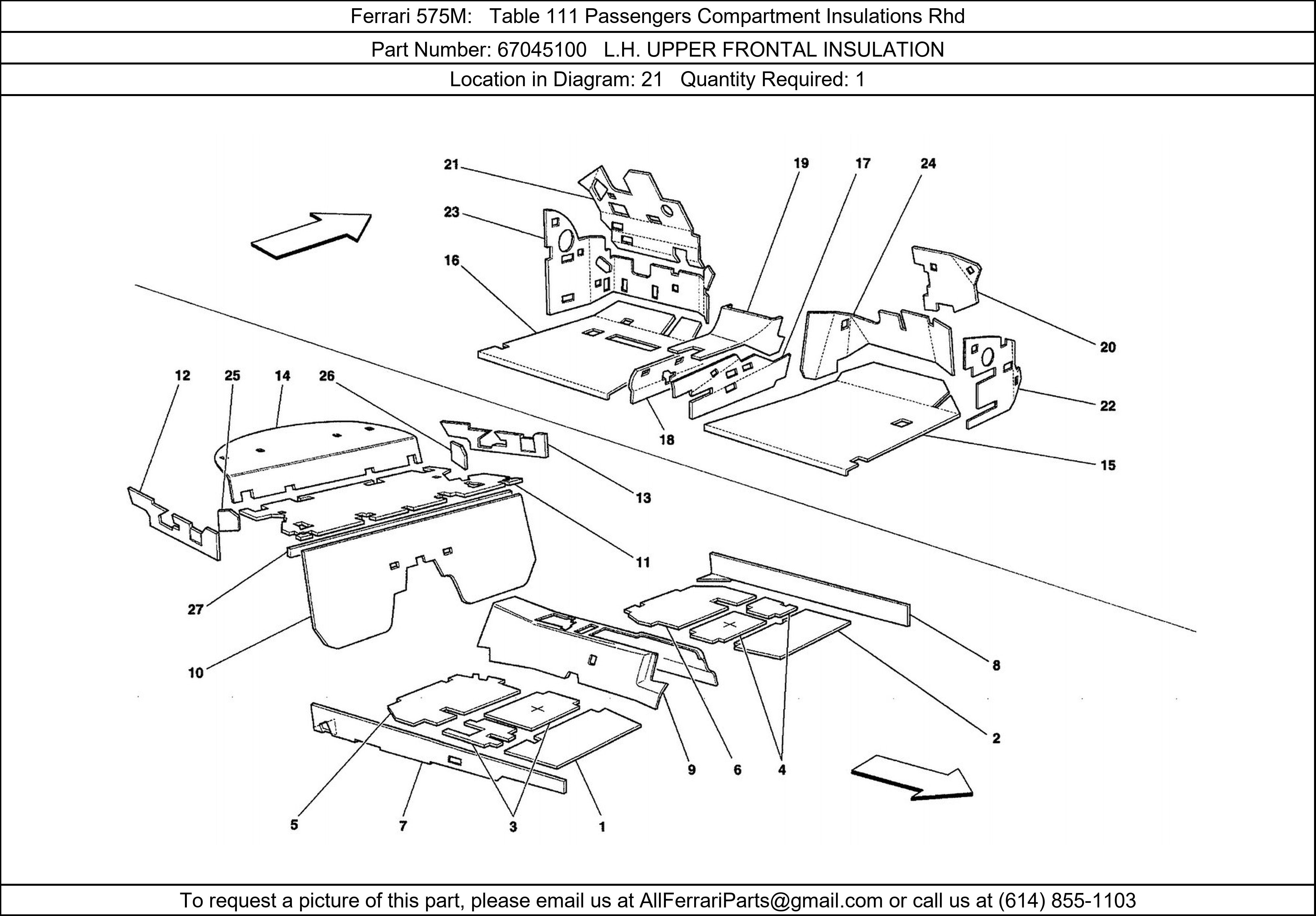 Ferrari Part Number 67045100 in Ferrari 575M Table 111 Passengers Compartment Insulations Rhd