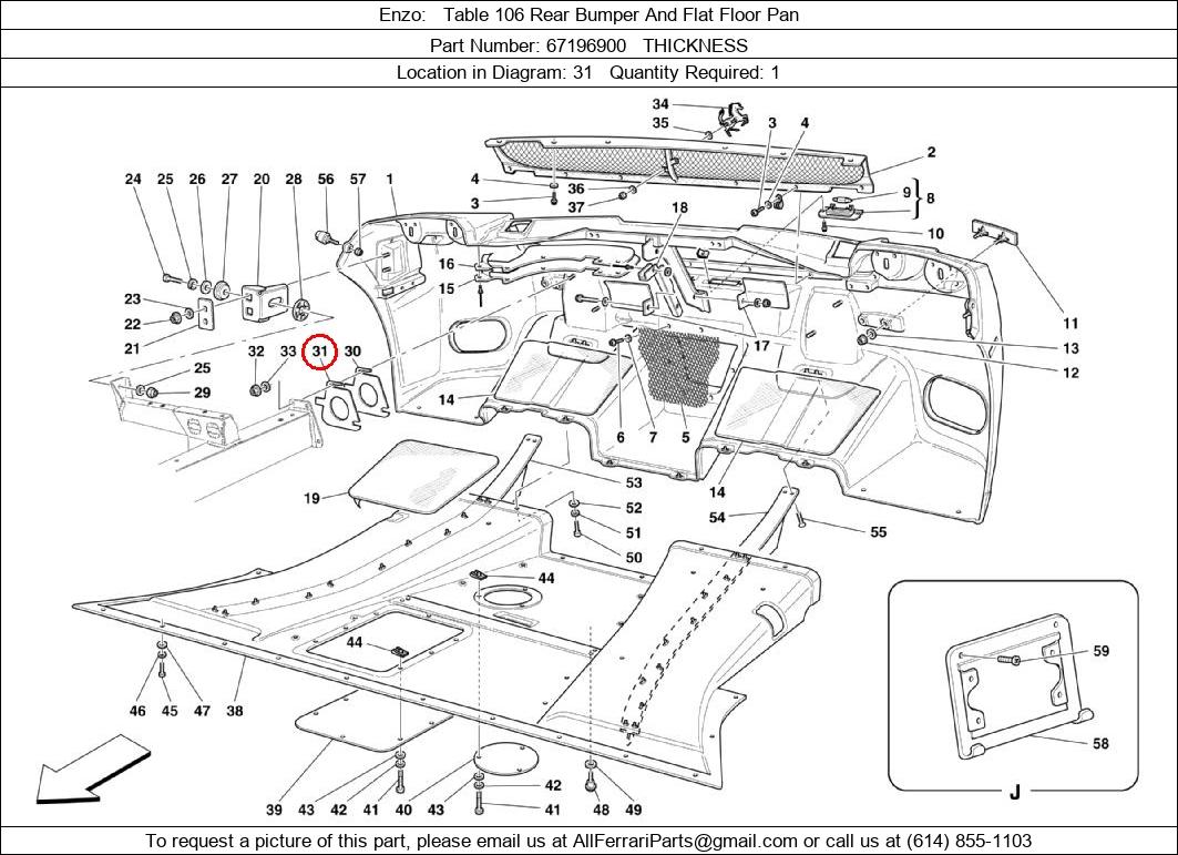 Ferrari Part Number 67196900, THICKNESS shown here as used in Enzo Table 106 Rear Bumper And Flat Floor Pan. Location in Diagram: 31. Required Quantity: 1