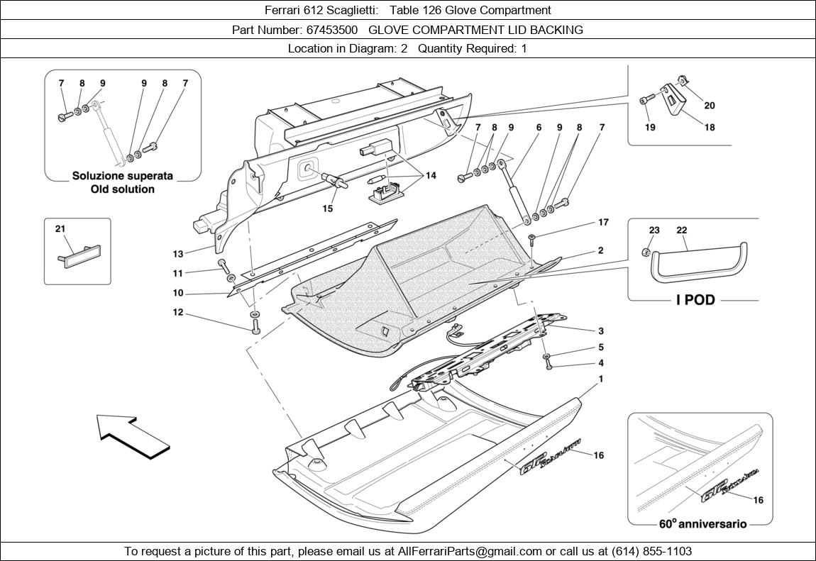 Ferrari Part Number 67453500 in Ferrari 612 Scaglietti Table 126 Glove Compartment