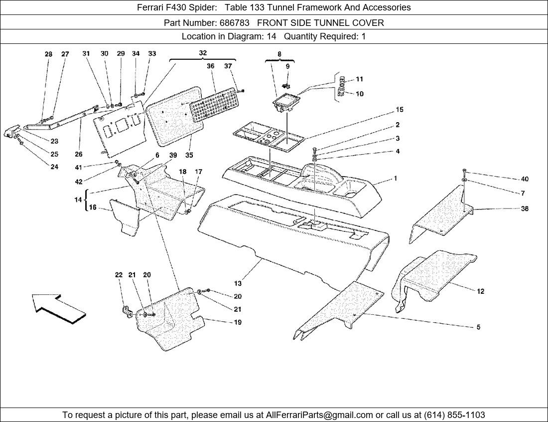 Home > Ferrari Part Number 686783 in Ferrari F430 Spider Table 133 Tunnel Framework And Accessories