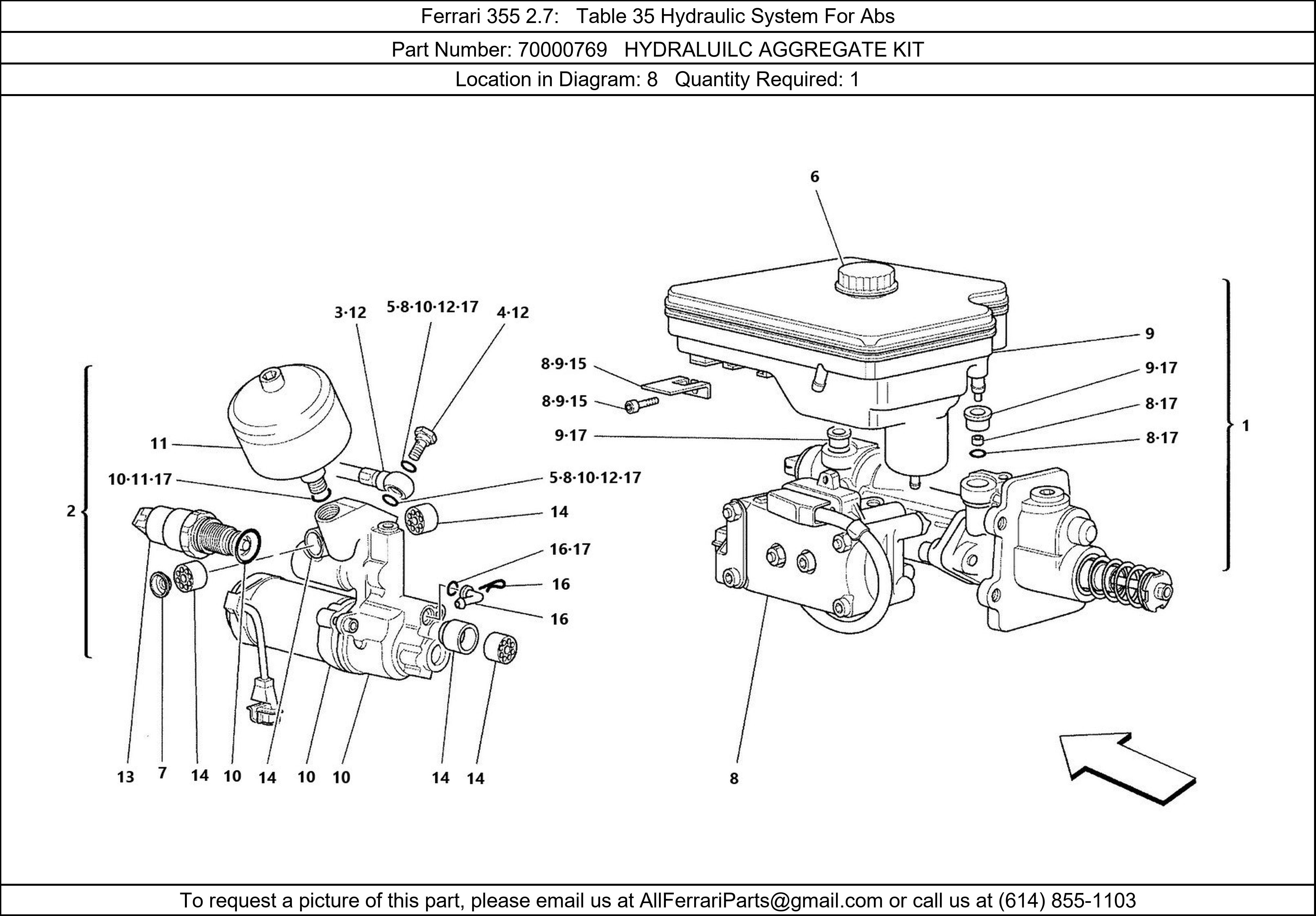 Ferrari Part 70000769, HYDRALUILC AGGREGATE KIT, shown here as used in Ferrari 355 2.7 Table 35 Hydraulic System For Abs. Other uses of this part are shown below: