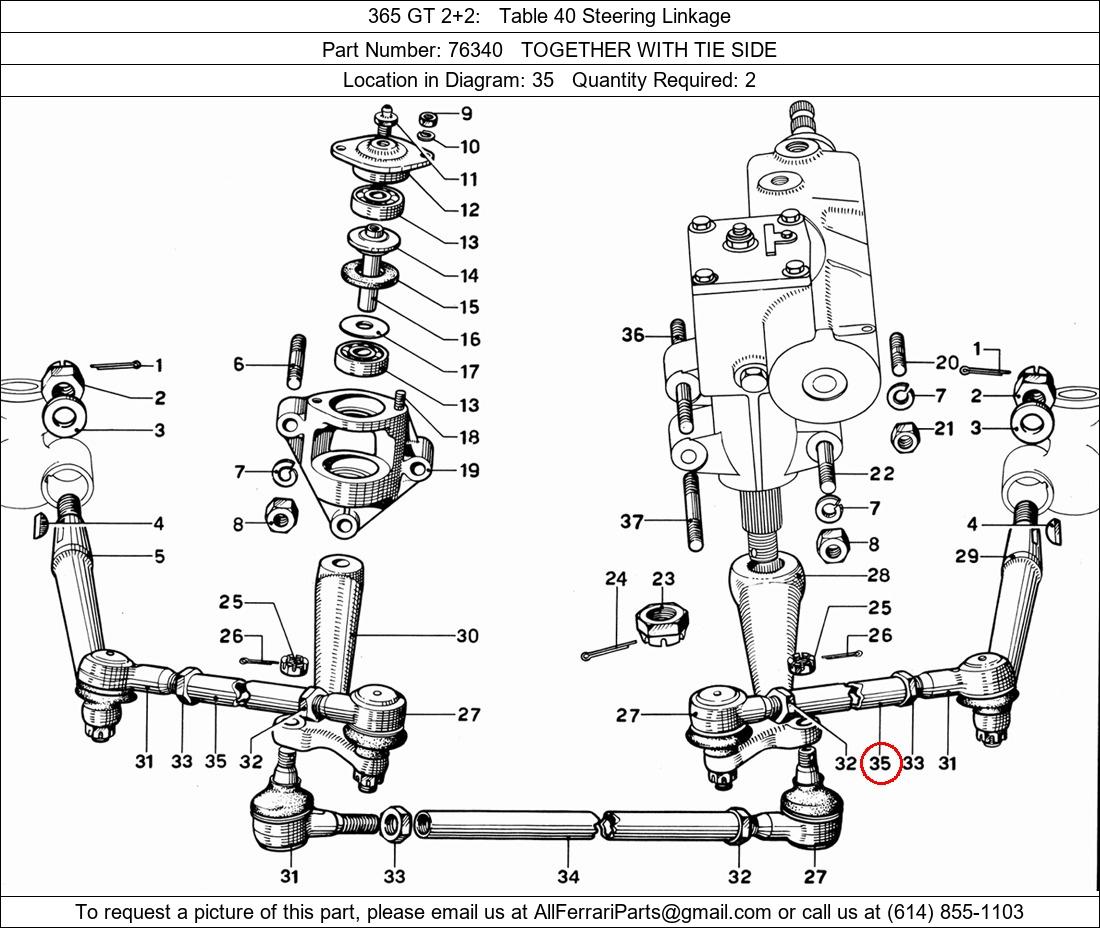 Ferrari Part Number 76340, TOGETHER WITH TIE SIDE shown here as used in 365 GT 2+2 Table 40 Steering Linkage. Location in Diagram: 35. Required Quantity: 2. This Ferrari part is used in more than one diagram. Click on the diagrams below to see alternative uses of this part:
