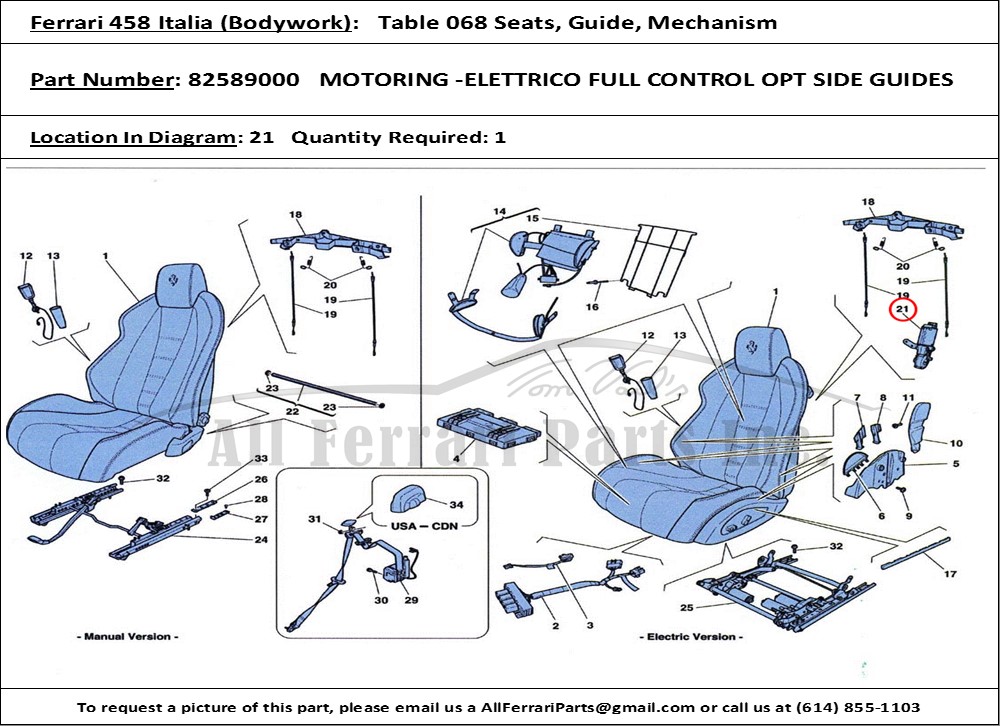| Ferrari 458 Italia | Table 068 Seats, Guide, Mechanism (021) |