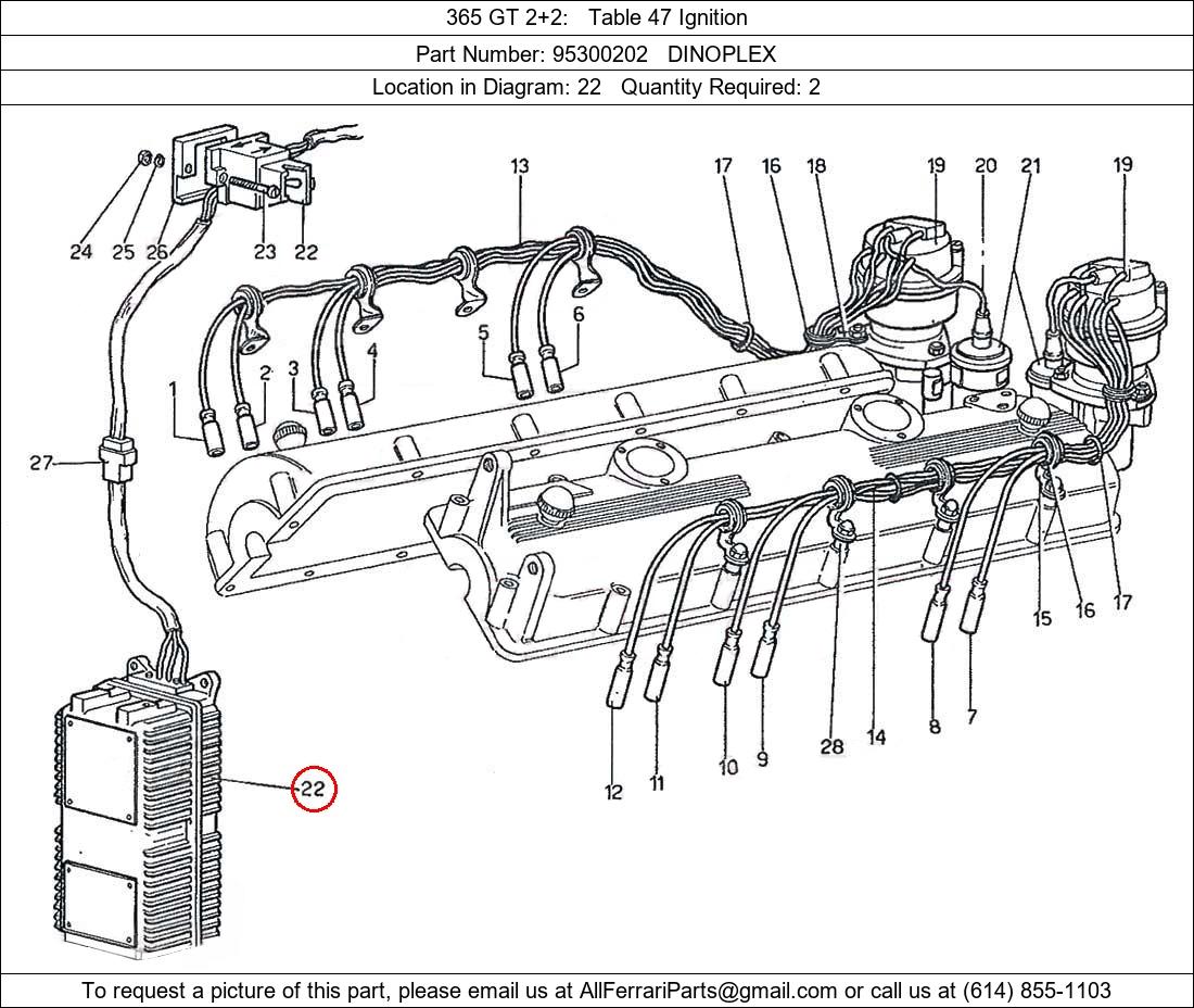 Ferrari Part Number 95300202, DINOPLEX shown here as used in 365 GT 2+2 Table 47 Ignition. Location in Diagram: 22. Required Quantity: 2