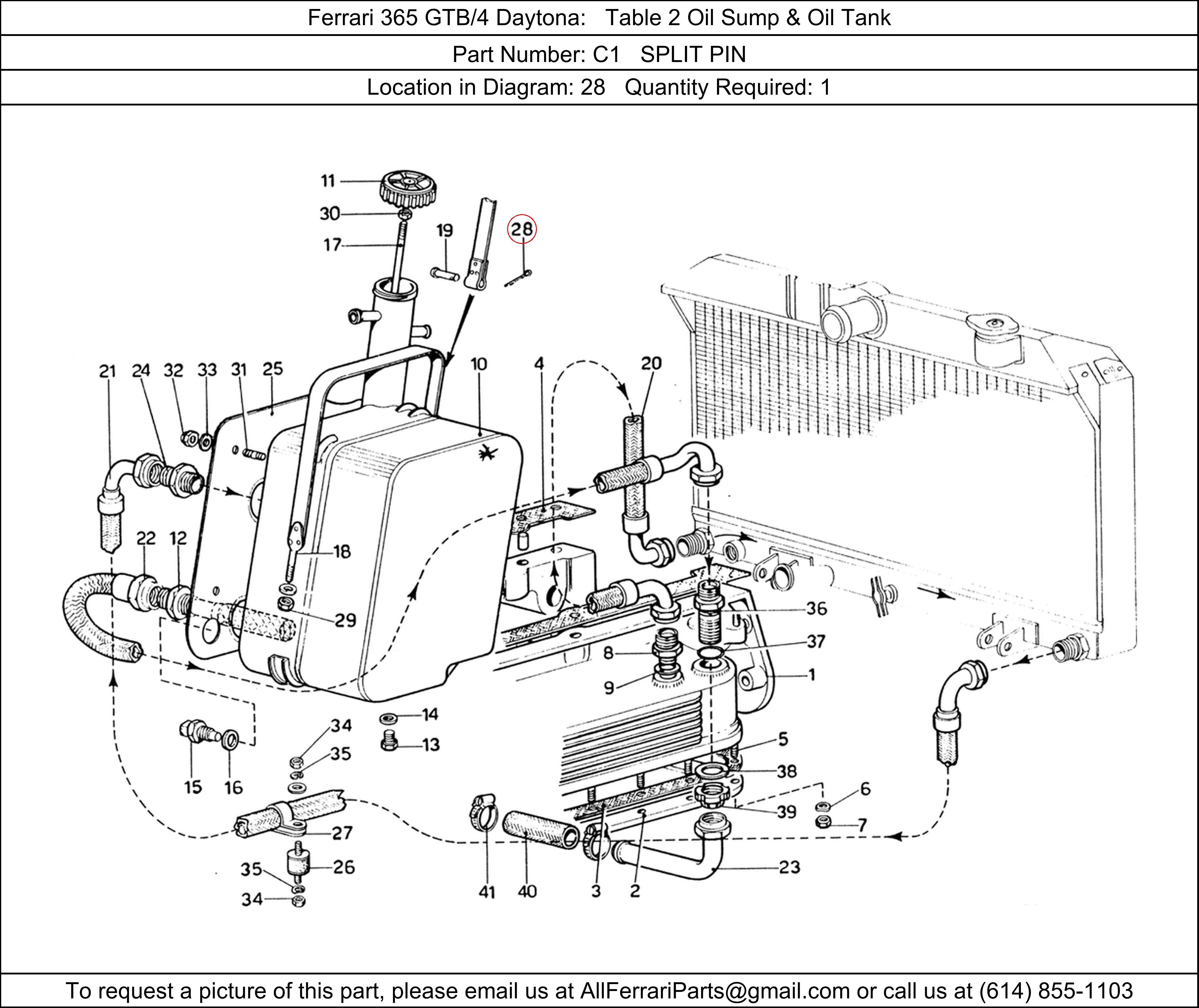 Ferrari Part Number C1, SPLIT PIN shown here as used in Ferrari 365 GTB/4 Daytona Table 2 Oil Sump & Oil Tank. Location in Diagram: 28. Required Quantity: 1