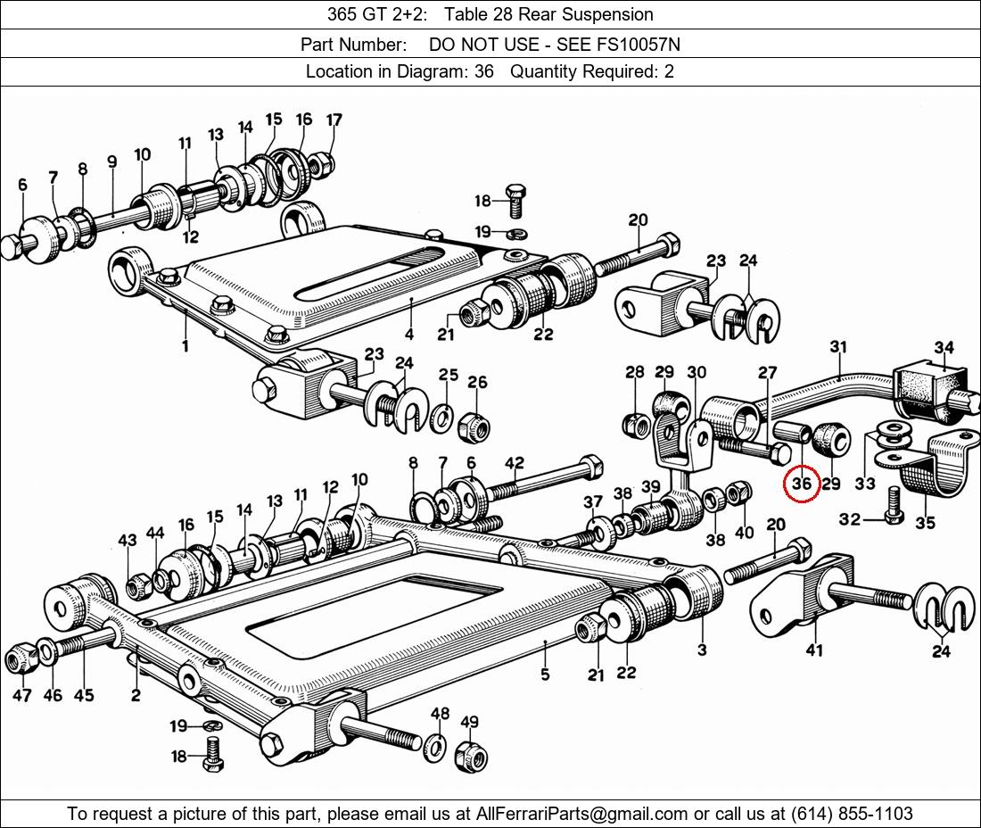 Ferrari Part Number 0, DO NOT USE - SEE FS10057N shown here as used in 365 GT 2+2 Table 28 Rear Suspension. Location in Diagram: 36. Required Quantity: 2