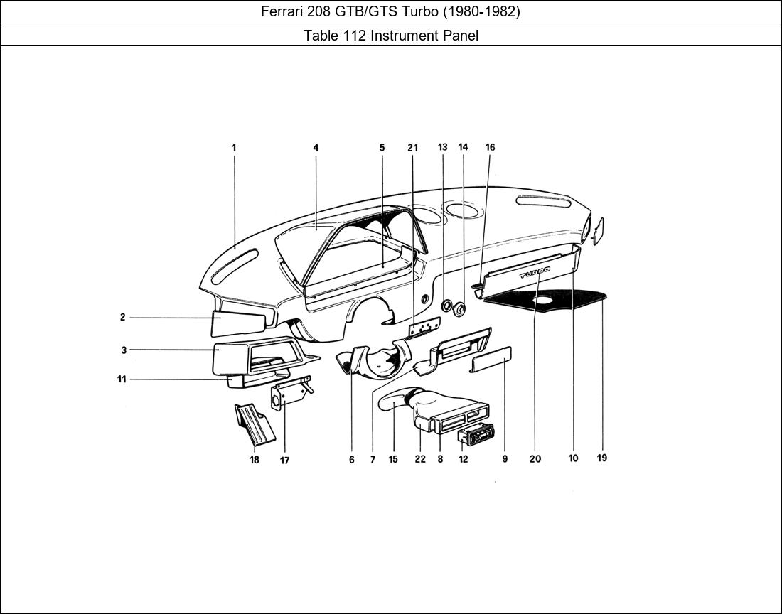 > Ferrari Parts 208 GTB/GTS Turbo (1980-1982) Table 112 Instrument Panel Parts
