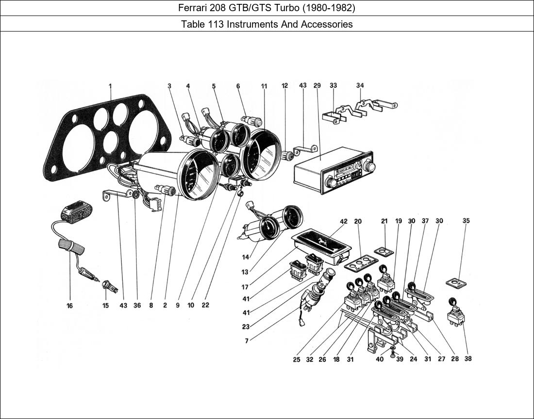 > Ferrari Parts 208 GTB/GTS Turbo (1980-1982) Table 113 Instruments And Accessories Parts