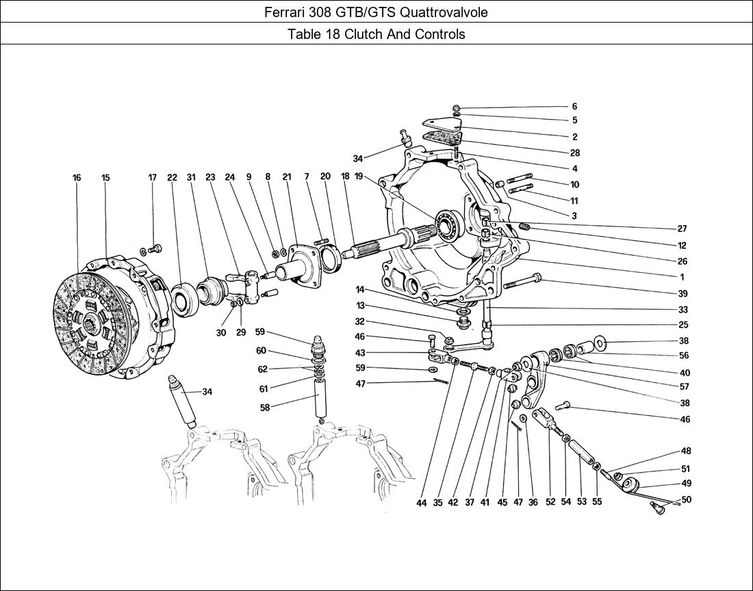 > Ferrari Parts 308 GTB/GTS Quattrovalvole Table 18 Clutch And Controls Parts