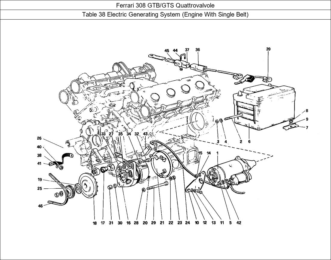 > Ferrari Parts 308 GTB/GTS Quattrovalvole Table 38 Electric Generating System (Engine With Single Belt) Parts