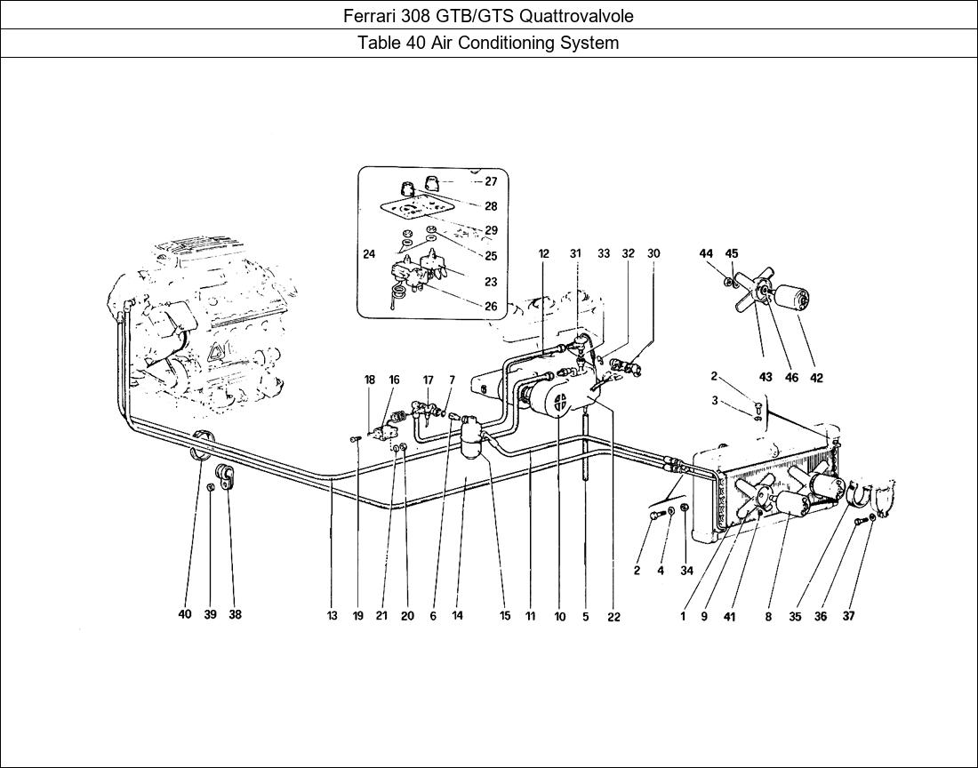 > Ferrari Parts 308 GTB/GTS Quattrovalvole Table 40 Air Conditioning System Parts