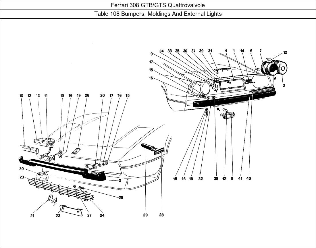> Ferrari Parts 308 GTB/GTS Quattrovalvole Table 108 Bumpers, Moldings And External Lights Parts